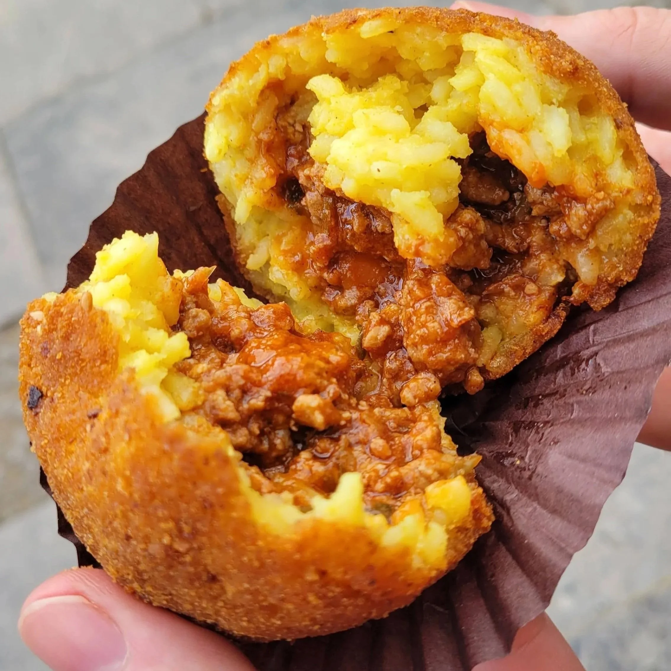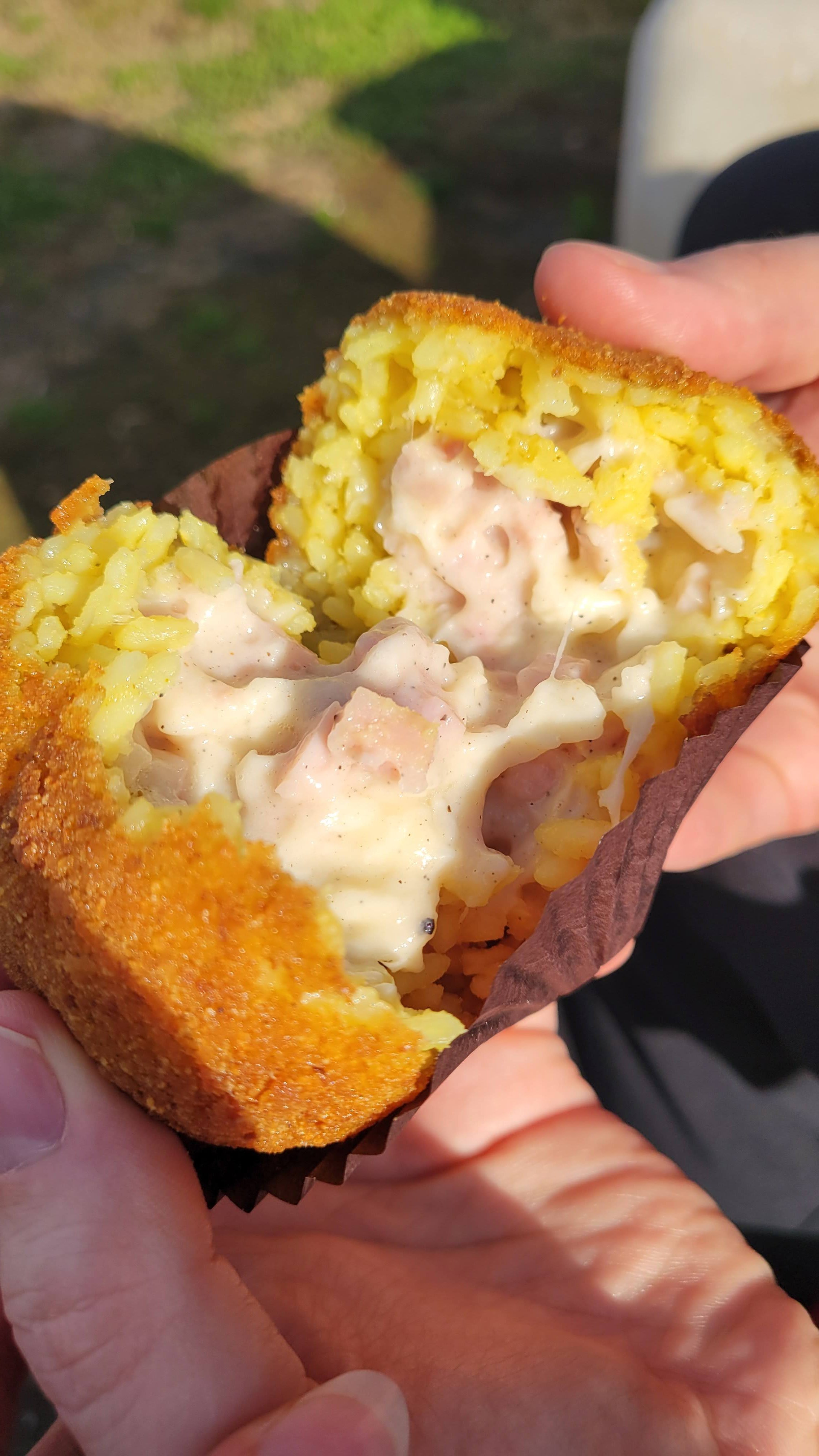 So what is it? Take a ball of saffron-spiced rice, stuff it with your choice of filling, coat it in breadcrumbs, and deep-fry it until it’s crispy and golden. E ecco qua, a traditional Sicilian street food is born!