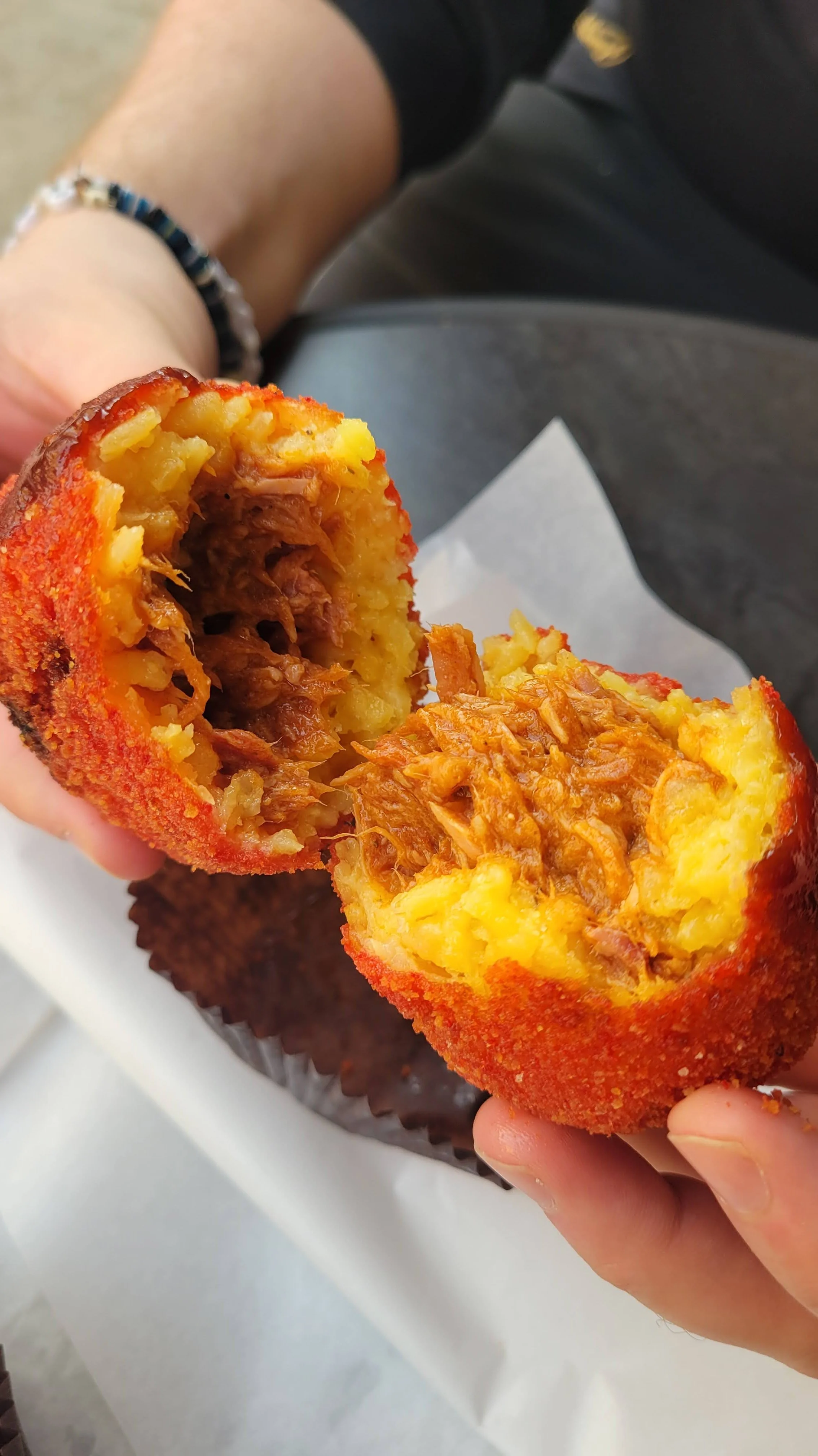 Sfrigola’s claim to fame is that they fry their arancine fresh to order, and that is exactly what sets them apart. Crispy, delicious flavour and steaming hot! Of all of the bonus flavours we tried, the chicken curry was our absolute favourite.